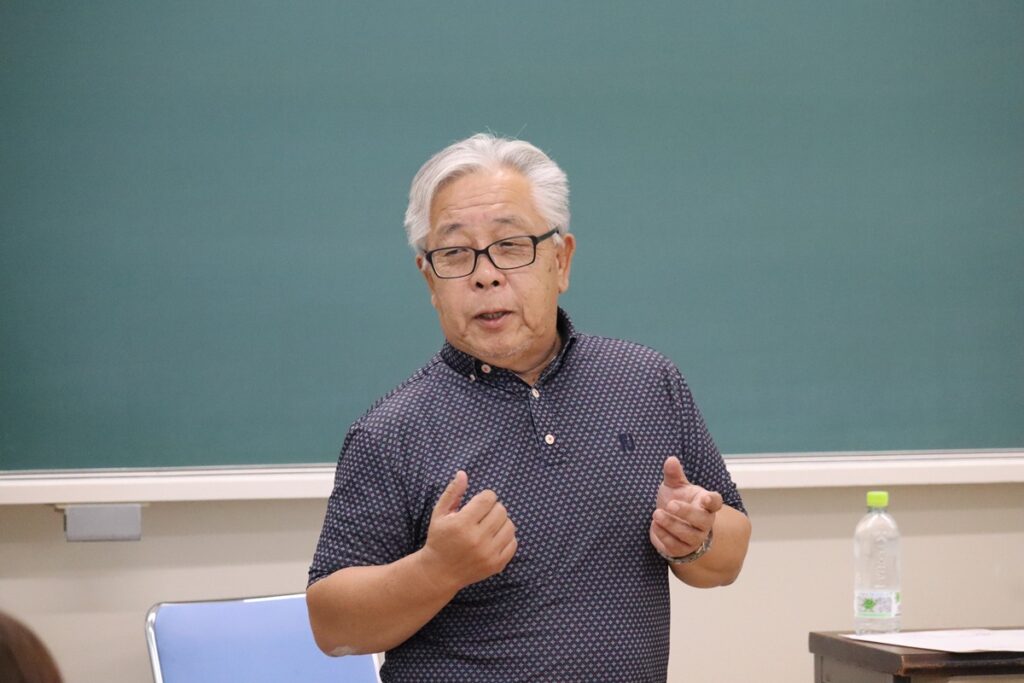 10月7日は、宇土市立鶴城中学校前校長の池田浩一先生をお招きして、「教育とは(学校の役割)」と題し、長年の教員生活を通しての子どもたちへの思い、管理職としてのスクールカウンセラー、スクールソーシャルワーカーとの協働について講話をいただきました。