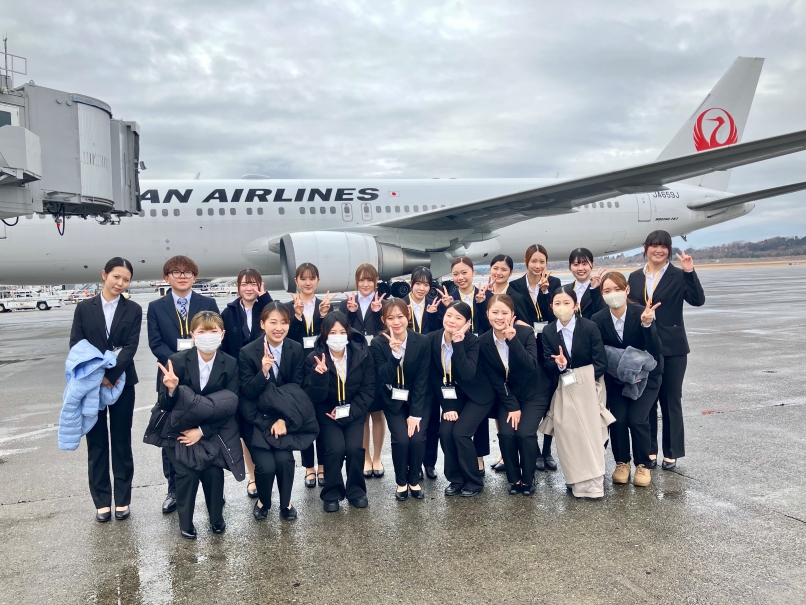 キャリア・イングリッシュ専攻の1年生の後期科目「エアライン・ツーリズム講座」の授業の一環として、熊本空港の見学をさせていただきました。
