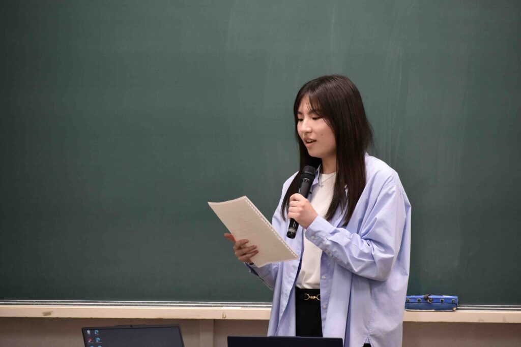 発表会では、インド、イギリス、韓国、オーストラリア、ニュージーランド、東京、京都など、それぞれの留学や研修に参加した学生が現地での学びや振り返り、参加するうえで努力したことなどを紹介しました。