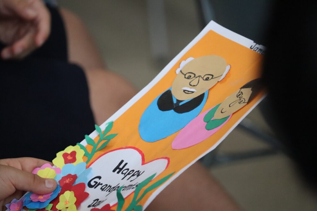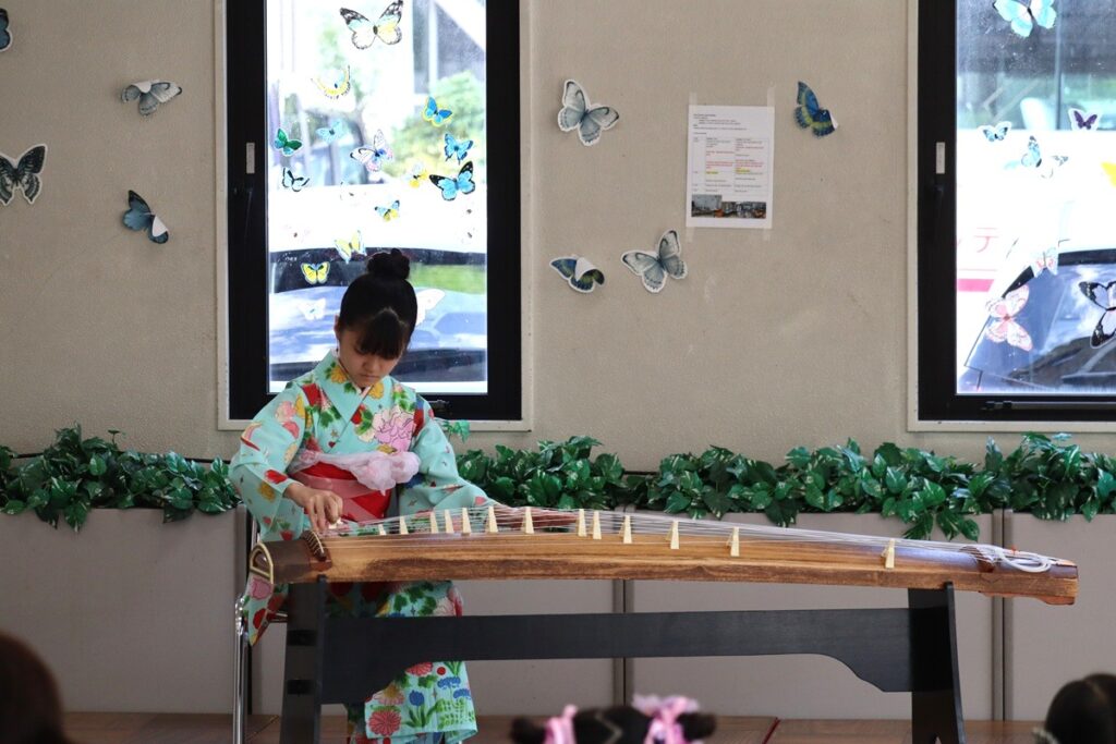 児童たちはダンスやキーボード、琴の演奏を披露した後、手作りのカードと折り紙をルーテルかよう会の皆さんに渡しました。