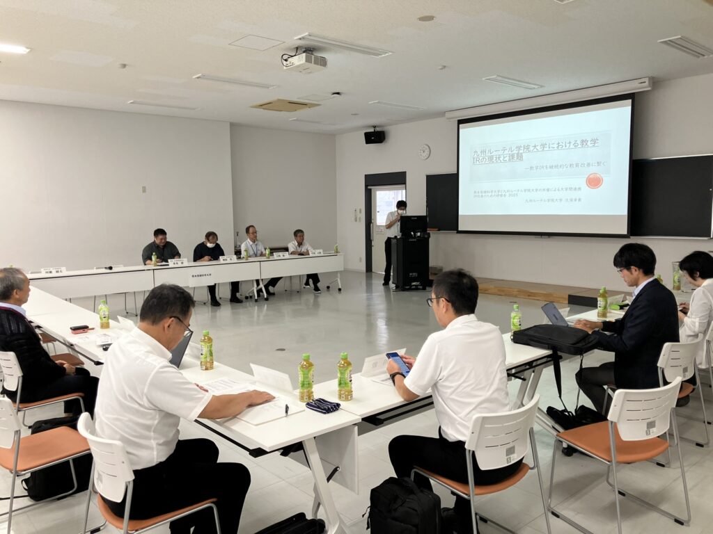 9月18日(木)九州ルーテル学院大学と熊本保健科学大学の共催により、大学間連携とIR(Institutional Research)の促進を目的とした研修会を開催しました。今年度のテーマは「教学IRを継続的な教育改善に繋ぐ」。熊本保健科学大学の水本教授と九州ルーテル学院大学の久保講師による報告を中心に、両大学の教学IRの現状や課題、今後の展望について活発な議論が交わされました。