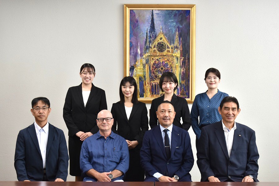 日本航空㈱に内定をいただいた松田采子さん、全日本空輸㈱に内定をいただいた若元和さん、ANA大阪空港(株)に内定をいただいた脇田梨乃さんの3名が、学長をはじめ教職員へ報告に来てくれました。