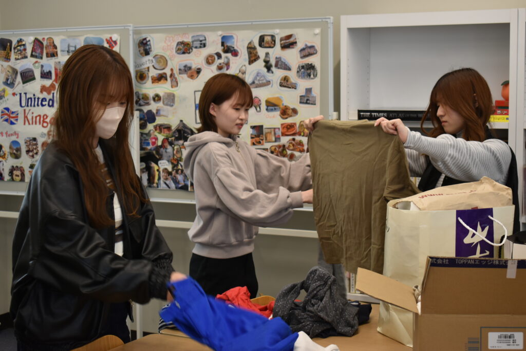 私たちは、学内で回収した古着を使ってファッションショーを行いました。服をリユースして環境を大切にすることや、高校生にキャリア・イングリッシュ専攻の良さを伝えることを目標とし、8月に行われたオープンキャンパスで開催しました。