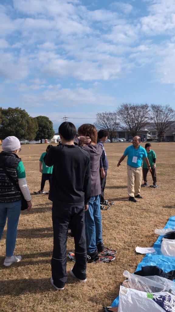 北区役所(植木)東芝生広場で開催された「スペシャルオリンピックス熊本大会」に、ボランティアとして本学から9名の学生が参加しました。今回の競技はスノーシューイングで、学生たちはアスリート(知的障がいのある方々)のサポート、会場運営、表彰式対応などを担当しました。
