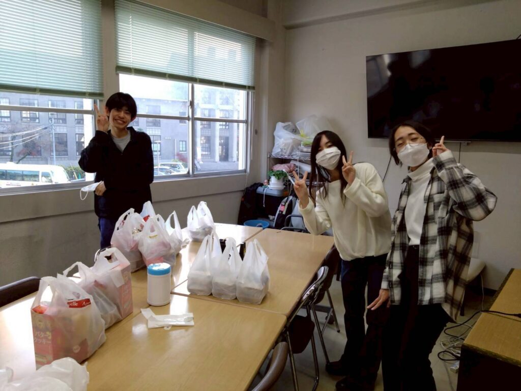 今回、おにぎりボランティアの活動を行いました。ボランティアセンターでおにぎりのお弁当をみんなで作り、花畑公園で支援を必要としている方々に配りました。お弁当を受け取った方々にも喜んでいただけました。ご参加いただき、ありがとうございました。